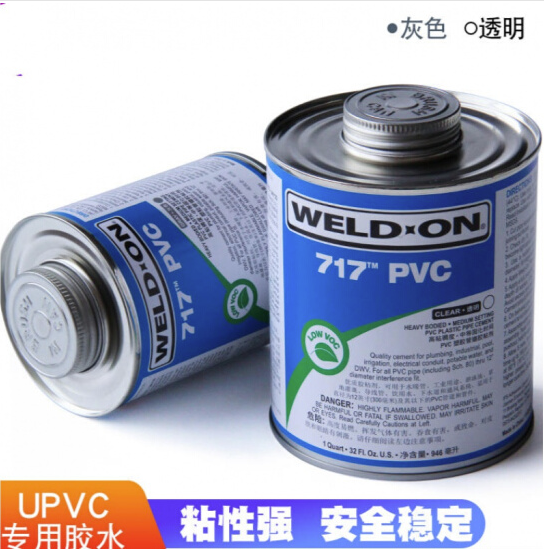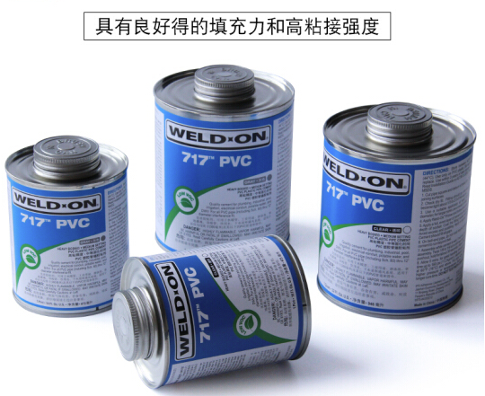 WELD-ON 717是一種灰色或透明、高粘稠度、中等干化時間的高強度PVC溶劑粘膠,這種溶劑粘膠用于粘接包括Schedule 80規(guī)格在內(nèi)的干涉良好的PVC管件和管道直達12英寸直徑,無壓系統(tǒng)可達到18英寸。本產(chǎn)品對于大口徑管道的空隙填補性能良好,
